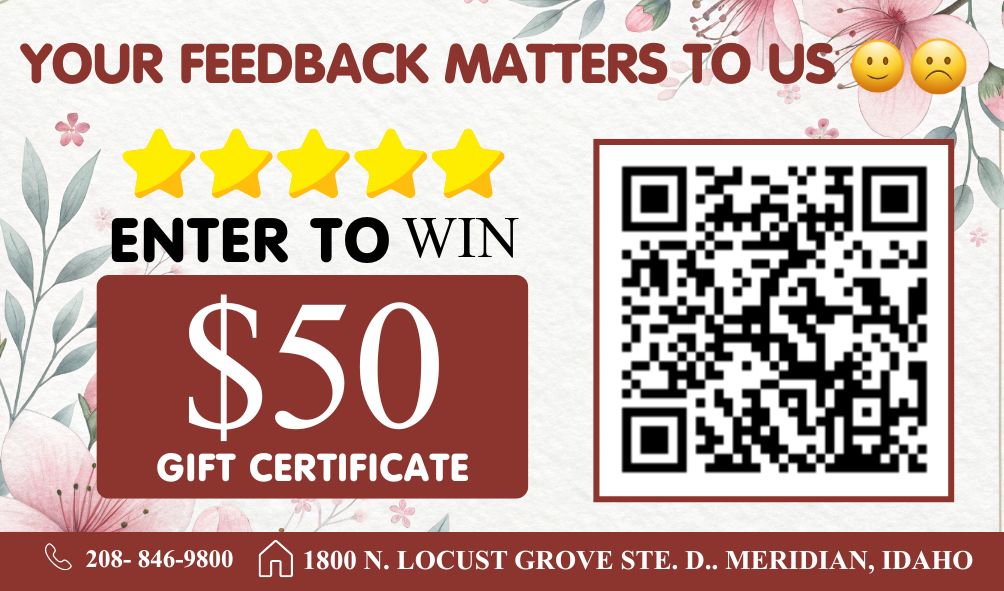 Share your thoughts about your experience and get one free upgrade on us plus automatic entry into our Giveaway for a $50 Gift Certificate!